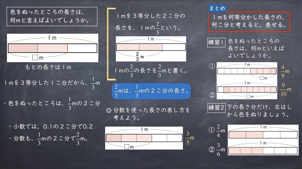 <めあて>分数を使った長さの表し方を考えよう。