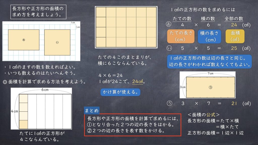 第3・4時 長方形、正方形の面積を計算で求める方法