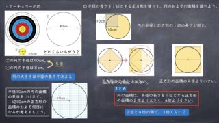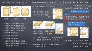 第1時 比例の視点からとらえる小数倍・分数倍の関係<目標>比例の性質について理解する。<問題>水そうの水の量は、水を入れる時間に比例します。表には書かれていない時間のときの、水そうの水の量を考えましょう。<めあて>比例する2つの数量の関係に...